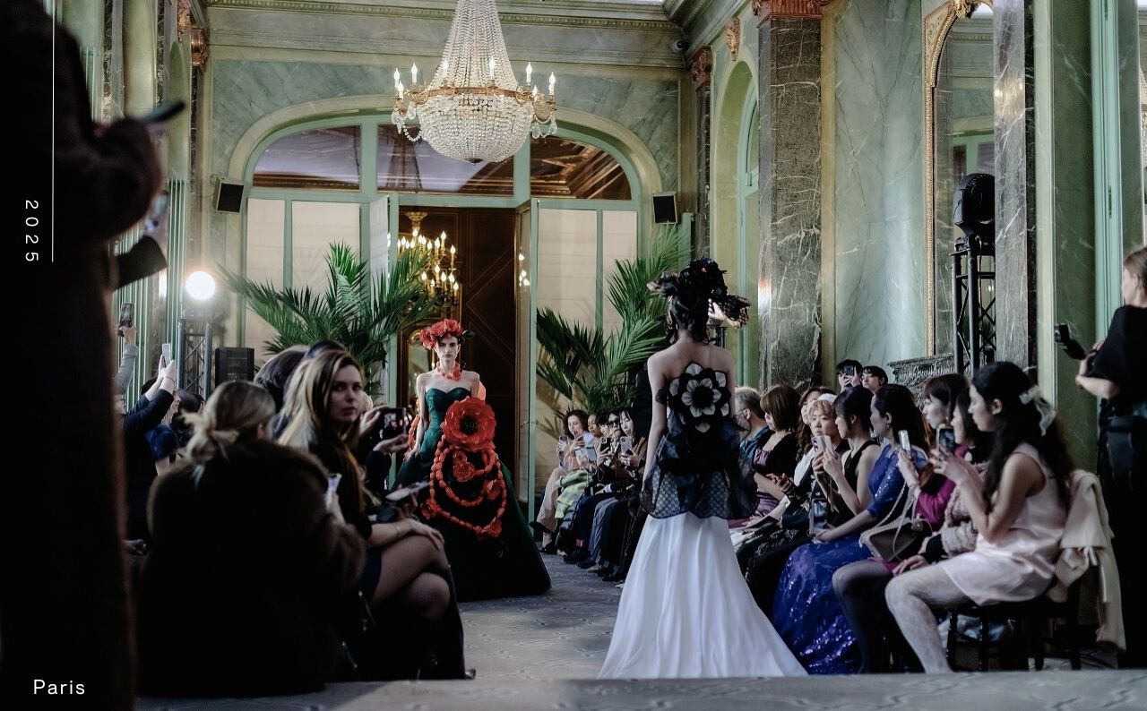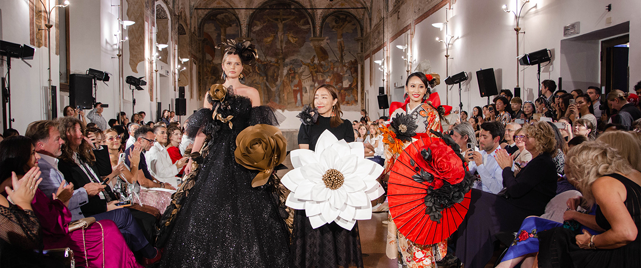 日本から世界へ! 折り紙のテクニックから進化した花でドレスを飾ります。